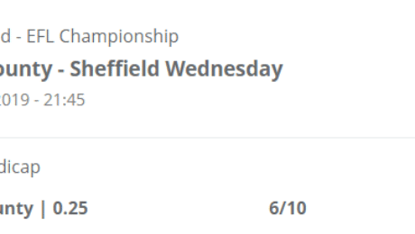 England Championship Derby County – Sheffield Wednesday, Asian Handicap +0.25 Derby County, Stake 6/10, odd 1.85 at Betfair (1-1 HALF WIN) PREVIEW: Coming off the back of a two-game win streak, Sheffield Wednesday have lost two of their last ten matches with both teams scoring in their last six straight league games for the 12th