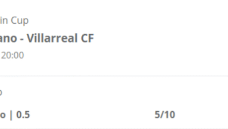 Spain Copa del Rey Rayo Vallecano – Villarreal CF, Asian Handicap +0.5 Rayo Vallecano, Stake 5/10, odd 1.74 at Betfair (0-2 LOST) PREVIEW: Rayo managed to beat Betis 3-2 in ET after an amazing game in last round. On the other hand Villarreal beat Girona 3-0, but struggled a week before at Orihuela winning in